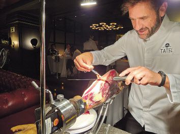 이베리아반도 스포츠-대중문화 스타들이 투자한타텔 레스토랑에선 늘 하몬 절단 장면을 시연한다. |