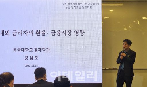 강 교수는 원·달러 환율이 미국의 급격한 금리 인상 영향 등을 받아 올 8월 이후 급격히 상승했다고 설명했다. 원·달러 환율은 올 초 1200원대에서 지난 10월 1440원대까지 급등했다. 특히 미국이 네 차례 자이언트 스텝(기준금리 0.75%포인트 인상)을 단행하는 등 긴축 속도를 높이면서 최근 원화 가치 하락은 가팔라졌다.