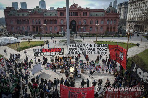 아르헨티나 대통령 궁 앞에서 월급 인상 시위 |