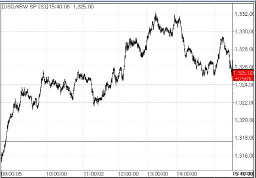 16일 서울외국환중개에 따르면 환율은 전 거래일 종가(1317.6원)대비 7.4원 오른 1325.0원에 마감했다. 지난 14일 이후 2거래일만에 1320원대로 오른 것이다. 이날 환율은 미국 생산자물가지수(PPI)가 시장 예상치를 하회한 영향에 역외 환율 하락으로 전일 대비 1.6원 내린 1316.0원에 시작했지만, 폴란드에 미사일이 떨어졌단 소식이 아시아 시장에서 달러 결제 수요를 끌어 올리면서 상승 흐름으로 전환했다. 장중엔 1332.1원까지 오르기도 했다.