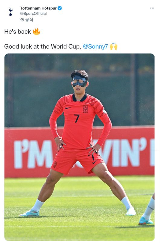잉글랜드 프리미어리그(EPL) 토트넘 홋스퍼가 '마스크맨' 손흥민의 월드컵 출전을 응원했다.