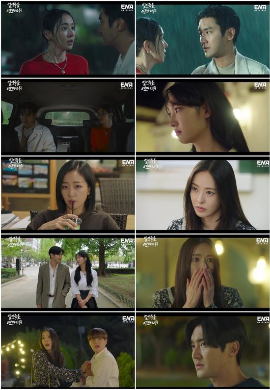 먼저 구여름(이다희)은 갑작스레 내린 폭우에 철수를 결정한 촬영 현장을 마무리하다가 혼자 남게 됐고, 이를 알게 된 박재훈(최시원)은 지체 없이 구여름을 데리러 갔다. 구여름은 박재훈에게 고맙다고 말했지만, 박재훈은 “오해하지마. 친구로서 간 거니까. 다른 뜻 없다”고 차갑게 답했다. 이때 한지연(이주연)은 두 사람의 모습을 지켜보며 착잡한 듯 고개를 떨궜다.