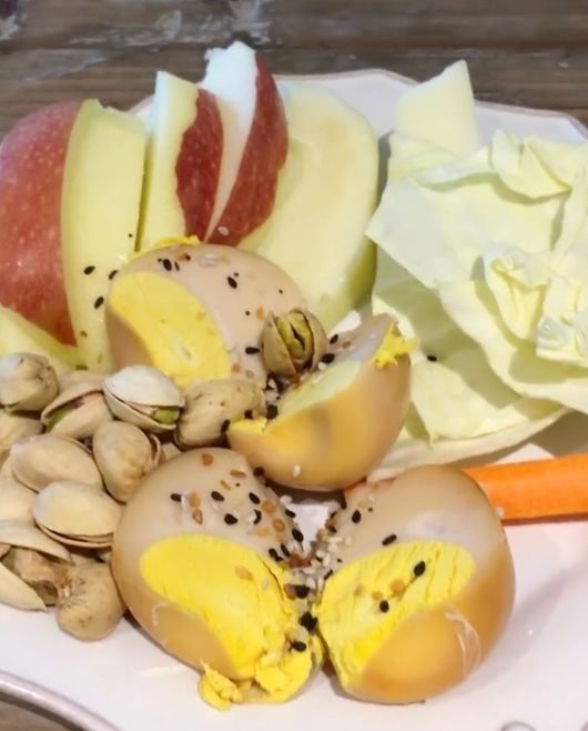 특히 사진 속 접시에는 구운 계란 2개와 사과 반개, 양배추와 당근, 견과류 약간이 전부였다. 강수지는 "간단한 아침 식사"라고 덧붙였으나 간단하다 못해 단촐할 정도로 적은 식사량이 팬들의 시선을 모았다.
