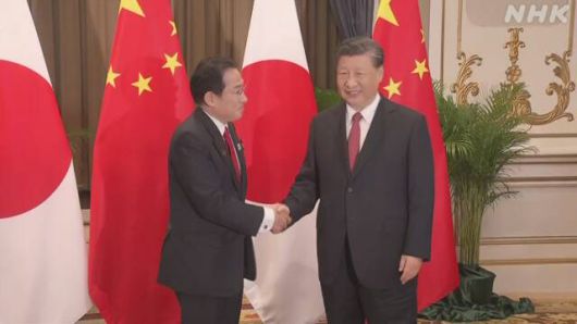 기시다 후미오 일본 총리(왼쪽)와 시진핑 중국 국가주석(사진=NHK방송화면 캡처) |