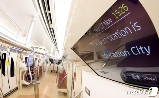 카타르 도하 지하철의 내부 모습.. 생각보다 이용객이 많지 않다. ⓒ News1 이동해 기자 |