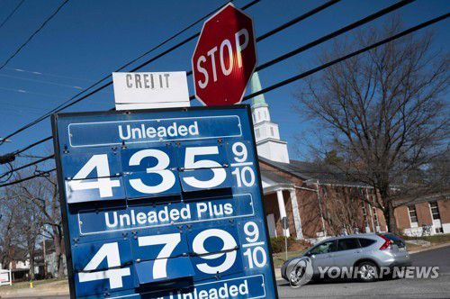 메릴랜드주 한 주유소 앞에 내걸린 휘발유 가격 |