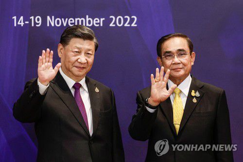 시진핑 중국 주석(왼쪽)과 쁘라윳 짠오차 태국 총리 |