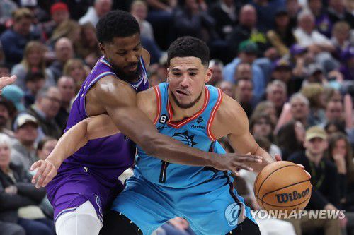 (서울=연합뉴스) 이의진 기자 = 미국프로농구(NBA) 피닉스 선스가 '간판' 데빈 부커의 49득점 분전에도 접전 끝에 유타 재즈에 1점 차 아쉬운 패배를 당했다.