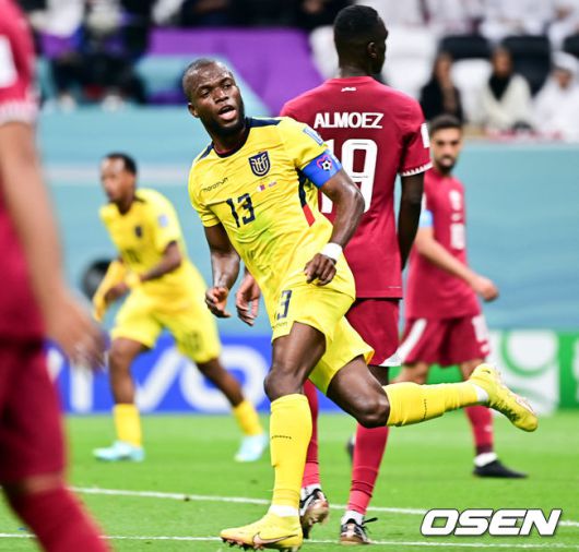 [OSEN=알코르(카타르), 박준형 기자] 20일(현지시간) 오후 카타르 알코르 알베이트 스타디움에서 2022 카타르 월드컵 조별리그 A조 카타르와 에콰도르의 개막전이 진행됐다.전반 에콰도르 발렌시아가 추가골 넣고 기뻐하고 있다.2022.11.20 / soul1014@osen.co.kr |
