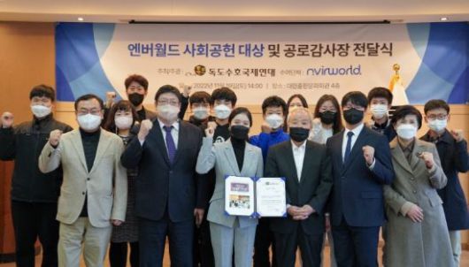 지난 19일 대한출판문화회관 4층에서 진행된 사회공헌 대상 시상식에서 블록체인 혁신 기업 엔버월드(NvirWorld)가 사회공헌 대상을 수상했다.