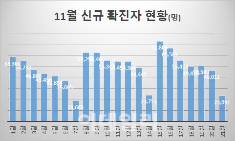 21일 중앙방역대책본부에 따르면 이날 0시 기준 신규 코로나19 확진자는 2만3091명으로 집계됐다. 전주 동일인 12일(2만3751명)보다 660명 적은 숫자다. 지난 6차 유행 이후 7만명대 확진자가 나온 것은 지난 15일(7만2866명)이 유일하다.