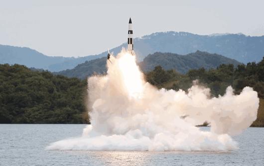 북한이 지난 10월 25일 저수지에서 잠수함발사탄도미사일(SLBM)을 발사하고 있다. /뉴시스. |