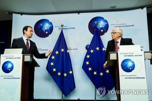 쿠르티 코소보 총리(왼쪽)와 보렐 EU 외교·안보 정책 고위대표 |