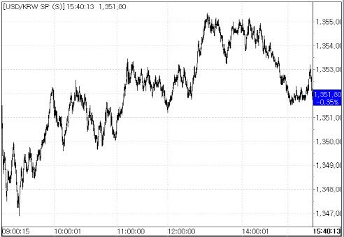 23일 서울외국환중개에 따르면 환율은 전 거래일 종가(1356.6원)대비 4.8원 내린 1351.8원에 마감했다. 종가 기준으로 환율이 하락한 것은 지난 15일 이후 6거래일 만이다. 이날 환율은 전일 대비 5.6원 내린 1351.0원에 시작한 뒤 장중 1346.9원까지 떨어지기도 했지만, 장중 위안화 약세 전환 등에 연동하면서 오후로 갈수록 낙폭을 줄여갔다.