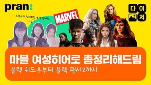 마블 시네마틱 유니버스가 '아이언맨'(2008)으로 시작된 뒤 첫 여성 히어로 주연의 영화가 나오기까지 무려 11년이 걸렸습니다. 첫 주자는 바로 '캡틴마블'(2019)이었죠. PRAN팀은 캡틴마블을 히어로 중의 히어로로 꼽았는데요. 바로 약자에게 힘이 되어주기 위해 자신을 필요로 하는 곳을 찾아 우주를 항해하기 때문이에요.