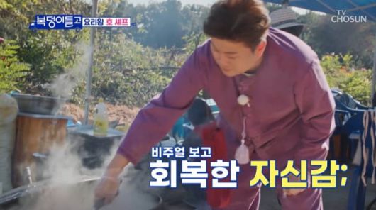 밭에서 물러난 김호중은 100여 명의 고구마 밭 인부들이 먹을 새참 '경상도식 갱시기' 100인분 만들기에 돌입했다. 그는 가마솥에 장작불 붙이기부터 갱시기 재료인 김치 손질, 양념까지 온갖 정성을 쏟으면서도 "이렇게 많이 해본 적은 없다. 안되면 가까운 중국집에서 제가 오늘 쏘겠다"라며 약한 모습을 보였다. 그러나 잠시 후 가마솥 안에서 펄펄 끓고 있는 새빨간 갱시기의 비주얼을 확인하고는 안도의 한숨을 내쉬었다. 김호중이 준비한 갱시기와 빈대떡을 맛본 송가인은 "역시 우리 호중이 눈대중이 기가 막혀요~ 간이 그냥 딱이여 딱!"이라며 음식을 흡입했다.