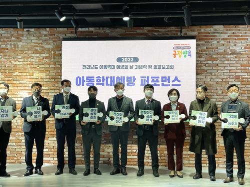 (무안=연합뉴스) 전승현 기자 = 잔남도는 24일 나주시 스페이스코윅 전남혁신점에서 아동학대 예방의 날 기념식 및 아동학대 근절 선포식을 했다.