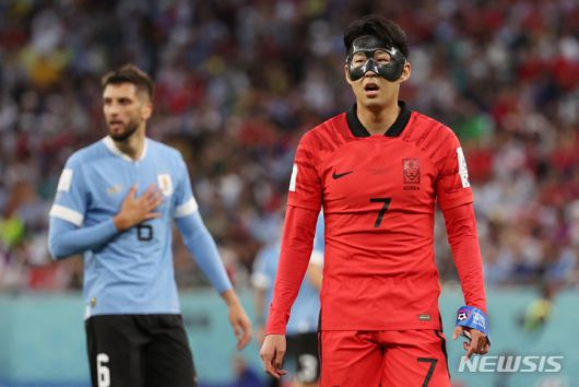 [알라이얀(카타르)=뉴시스] 조성우 기자 = 24일(현지시간) 카타르 알라이얀 에듀케이션 시티 스타디움에서 열린 2022 카타르 월드컵 H조 1차전 대한민국과 우루과이의 경기, 손흥민이 숨을 고르고 있다. 2022.11.24. xconfind@newsis.com |