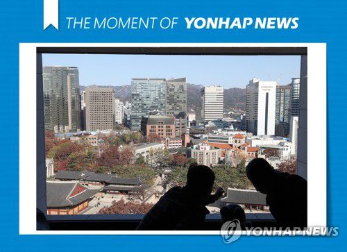 (서울=연합뉴스) 신현우 기자 = 27일 오전 서울시청 서소문청사 정동전망대를 찾은 시민들이 정동 일대를 바라보고 있다. 서울시는 2020년 2월 코로나19 유행으로 잠정 폐쇄한 정동전망대를 26일부터 재개방한다고 21일 밝힌 바 있다. 2022.11.27 [THE MOMENT OF YONHAPNEWS]