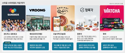 글로벌 경기 침체 속 스타트업 투자 시장이 얼어붙으면서 국내 ‘스타급’ 스타트업들마저 잇따라 한계 상황에 봉착해 구조조정과 회사 매각에 나서고 있다. 배달 대행 국내 1위인 메쉬코리아(서비스명 부릉)는 법정관리와 매각이 동시에 추진되고 있고 토종 OTT(온라인 동영상 서비스) 왓챠도 긴급 자금 수혈 후 대기업을 상대로 매각 의사를 타진 중이다. 투자 업계 돈줄이 마르면서 덩치 작은 스타트업들이 줄줄이 쓰러진 데 이어 최근엔 업계 간판 자리를 굳건히 지켰던 스타트업들도 투자금 조달 실패와 적자 폭증에 백기를 들기 시작한 것이다. 스타트업에 투자하는 정부의 모태펀드조차 내년 예산을 올해보다 40% 축소한 상황이라 내년엔 스타트업 업계 한파가 훨씬 거셀 것이라는 전망이 나온다.