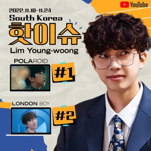 가수 임영웅이 신곡 두곡이 인기 유튜브 뮤직 비디오 핫이슈에 1위,2위를 기록 했다.