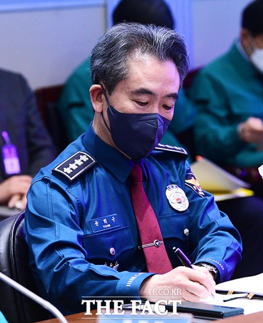[더팩트ㅣ이동률 기자] 윤희근 경찰청장이 28일 오전 서울 종로구 정부서울청사에서 열린 화물연대 집단운송거부 중대본 회의에 참석해 메모를 하고 있다.
