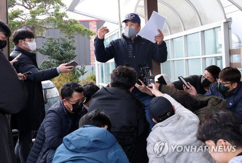 기자회견 하는 양양 추락 헬기 업체 대표 |