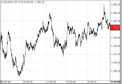 28일 서울외국환중개에 따르면 환율은 전 거래일 종가(1323.7원)대비 16.5원 오른 1340.2원에 마감했다. 이날 환율은 종가 기준 22일 이후 4거래일 만에 상승 전환했다. 장중가 기준으론 23일 이후 3거래일 만에 1340원대로 올라선 것이다. 이날 환율은 전일 대비 역외 환율 상승을 따라 12.3원 오른 1336.0원에 시작한 뒤 점차 상승폭을 확대했다.