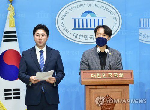 정치개혁·정치교체 행동선언 긴급기자회견하는 이탄희와 이동학 |