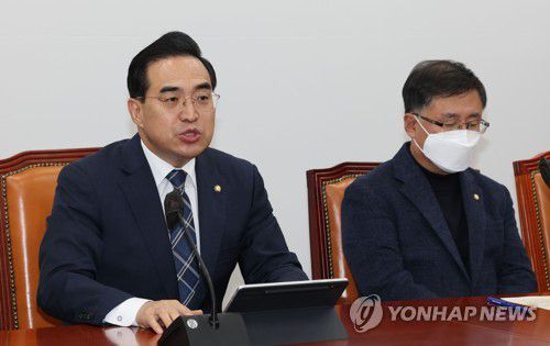 박 원내대표는 또 '서해 공무원 피격 사건'을 수사 중인 검찰이 전날 서훈 전 국가안보실장에 대해 구속영장을 청구한 것을 거론하면서 "근거가 없어 수사 내용이 번복되고 위법 감사, 하명 수사가 만천하에 드러났는데도 윤석열 정권의 정치검찰이 폭주를 멈추지 않는다"고 말했다.