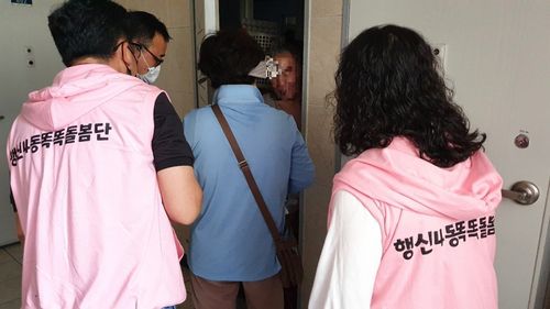 행신4동 똑똑돌봄단 독거노인 가정 찾아가 안부 확인하는 모습 |