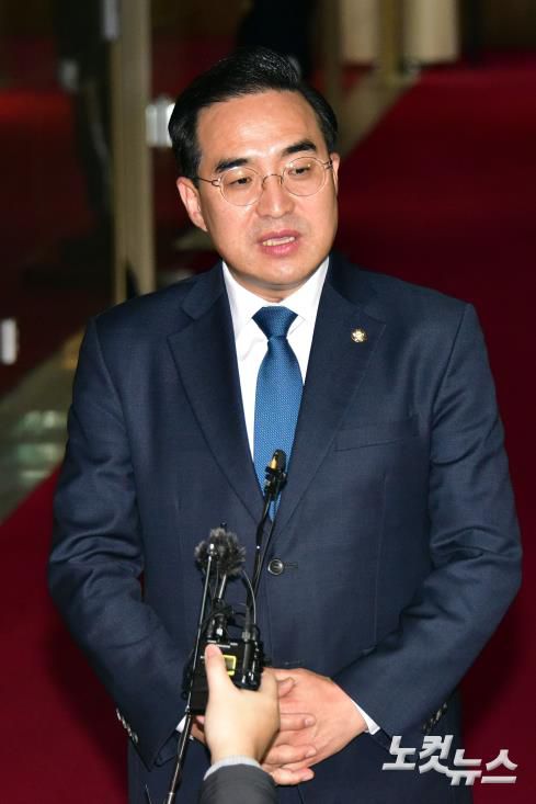 더불어민주당 박홍근 원내대표가 30일 서울 여의도 국회에서 국회의장-여야 원내대표 비공개 회동을 마치고 취재진의 질문에 답변을 하고 있다.저작권자 © CBS 노컷뉴스 무단전재 및 재배포 금지