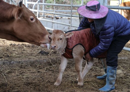 한파주의보가 발효 중인 30일 경남 함양군 휴전면 한우농장에서 한 농민이 갓 태어난 송아지에게 방한복을 입히고 있다.함양군 제공▶ 백래시의 소음에서 ‘반 걸음’ 여성들의 이야기 공간▶ ‘눈에 띄는 경제’와 함께 경제 상식을 레벨 업 해보세요!©경향신문(www.khan.co.kr), 무단전재 및 재배포 금지