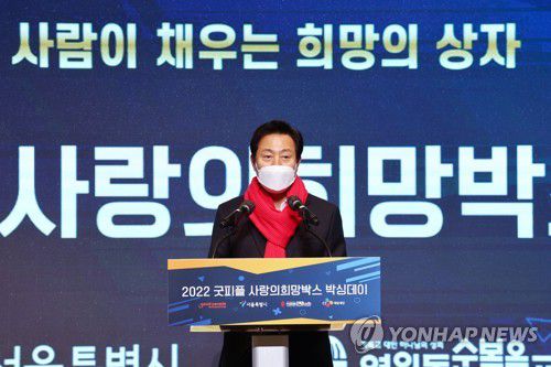 ▲ 오세훈 서울시장은 1일 오전 11시 10분 서울광장에서 열리는 '2022 구세군 자선냄비 시종식'에 참석한다. 이어 오후 1시 40분 시장실에서 윤영석 서울사회복지공동모금회 회장과 배우 김나운 등으로부터 사랑의 열매 배지를 전달받고 성금을 기부한다. 오후 2시 40분에는 광화문광장에서 진행되는 '사랑의 온도탑' 제막 행사에 참석해 나눔 문화 확산을 독려한다. (서울=연합뉴스)