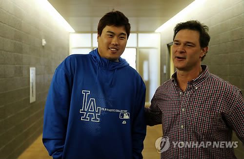 류현진과 돈 매팅리 감독 |