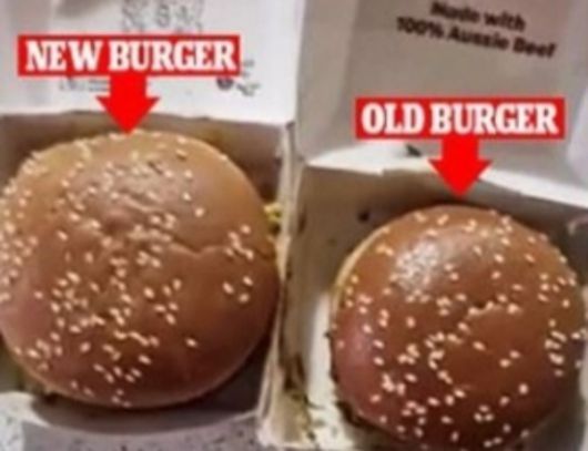 30일 영국 데일리메일에 따르면 북동부 퀸즐랜드에 사는 밥 로블러는 최근 자신의 소셜네트워크서비스(SNS)에 지난 8월25일 산 맥도날드 빅맥 버거와 방금 구입한 빅맥 버거를 비교한 영상을 올렸다.
