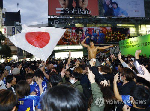 NHK 등에 따르면 도쿄 번화가인 시부야에서는 이날 이른 아침 음식점 등에서 경기를 보던 많은 팬이 승리가 확정되자 시부야의 명소인 대형 건널목 시부야역 앞 스크램블 교차로 주변에 모여 환호하며 승리를 축하했다.
