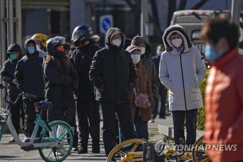 (AP=연합뉴스) 11월 30일 중국 베이징의 코로나19 검사 대기 줄. 2022.12.2. |