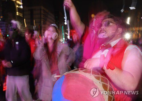 (서울=연합뉴스) 황광모 기자 = 2일 밤 서울 종로구 광화문 광장에서 열린 2022 카타르 월드컵 H조 예선 한국과 포르투갈 경기 합동 응원에 나선 붉은 악마들이 한국의 승리를 기원하며 열띤 응원을 펼치고 있다. 2022.12.2
