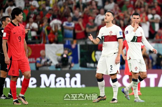 조규성이 2일(한국시간 3일) 카타르 도하 에듀케이션 시티 스타디움에서 열린 2022 FIFA 카타르 월드컵 조별리그 H조 3차전 포르투갈과 경기에서 상대와 신경전을 펼치고 있다. 2022. 12. 2.도하(카타르) | 최승섭기자 thunder@sportsseoul.com [기사제보 news@sportsseoul.com] Copyright ⓒ 스포츠서울&sportsseoul.com