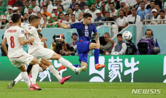 [도하(카타르)=뉴시스] 백동현 기자 = 29일(현지시간) 오후 카타르 도하 알투마마 스타디움에서 열린 2022 카타르 월드컵 조별리그 B조 3차전 이란과 미국의 경기, 미국 풀리시치가 득점하고 있다. 2022.11.30. livertrent@newsis.com |