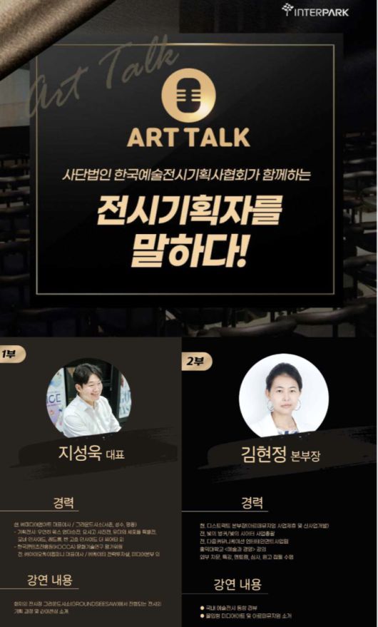 지성욱 대표는 화제의 전시장인 그라운드 시소에서 진행되는 전시의 기획과정과 라이센싱을 소개한다. 또 김현정 본부장은 국내 예술전시의 동향을 분석하고, 몰입형 미디어아트및 아르떼뮤지엄을 소개하는 시간을 갖는다.