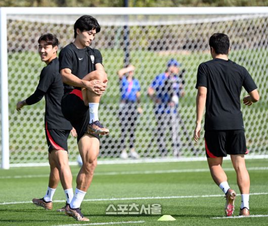 축구대표팀 조규성이 4일 카타르 도하 알 에글라 트레이닝센터에서 훈련을 하고 있다. 2022. 12. 4.도하(카타르) | 최승섭기자 thunder@sportsseoul.com [기사제보 news@sportsseoul.com] Copyright ⓒ 스포츠서울&sportsseoul.com