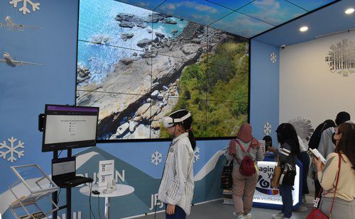 (자카르타=연합뉴스) 지난 3일(현지시간) 인도네시아 자카르타에 마련된 K브랜드 해외홍보관 '코리아 360'에서 시민들이 가상현실(VR) 기기를 통해 한국 관광지를 체험하고 있다. 2022.12.4 [한국콘텐츠진흥원 제공. 재판매 및 DB 금지]