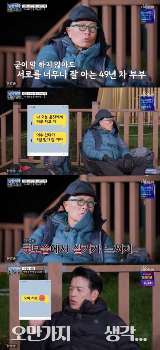 4일 방송된 TV조선 '낭만비박 집단가출'에서는 아내에 대해 언급한 허영만의 모습이 그려졌다.