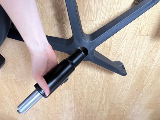 실제 조립 과정은 어떨까? 우선 중심봉을 오발다리에 끼워야 한다. 알루미늄 부분이 위를 향하게 장착하는 것 외에는 특별히 유의할 것이 없다. 이 상태에서 좌판을 조립해도 큰 무리가 없다. 오히려 좌판과 등받이가 결합되기 전의 무게가 가볍기 때문에 조립이 더욱 수월한 점도 있다.