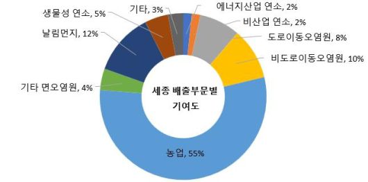 세종 지역의 초미세먼지 배출부문별 기여도. 환경부 제공. |