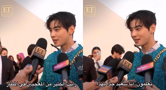 현지 시간으로 지난 4일 한 아랍 연예 매체 ET는 공식 SNS를 통해 이집트 패션 행사에 초대된 차은우의 인터뷰 영상을 공개했습니다.