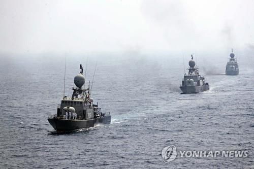 이란 해군 선박 2020년 호르무즈 해협 인근에서 훈련 중인 이란 해군 선박들. [EPA/IRANIAN ARMY OFFICE=연합뉴스 자료사진, DB화 및 재판매 금지]