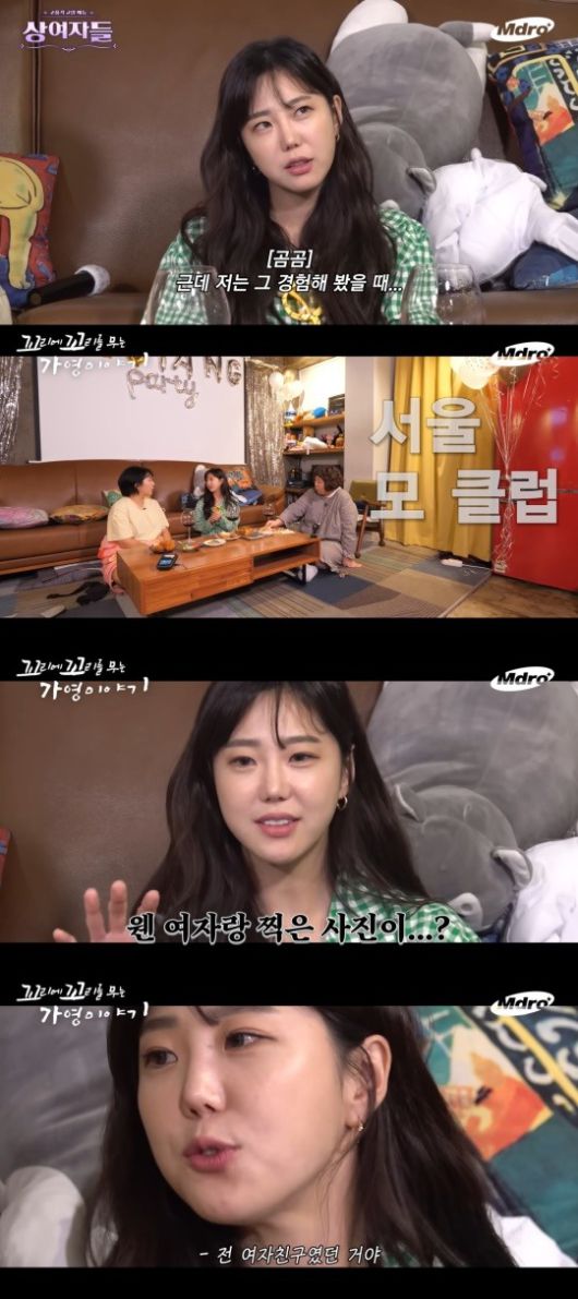 그런데 집 문을 열었을 때 남자 혼자 사는 향이 아니었다. 김가영은 "근데 침대 옆 탁자 위에 웬 여자랑 찍은 사진이 펼쳐져 있었다. 알고 보니까 그 여자는 전 여자친구였다"라고 했다.